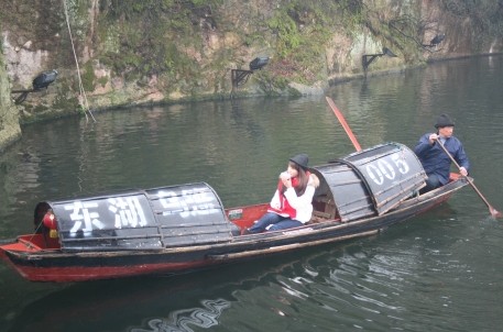 2012215上午浙江電臺(tái)錢江頻道《薇薇生活家——享旅游》欄目攝制組一行2人赴東湖景區(qū)取景拍攝專題節(jié)目。拍攝過程中,他們向工作人員要了一只盛有紹興黃酒的粗茶碗,帶上了紹興特色的烏氈帽,坐上了烏篷船。在烏篷船的搖曳中感受著江南水鄉(xiāng)紹興獨(dú)特的魅力。瞧!他們正享受其中呢!在烏篷船上咪著小酒,津津有味地聽著楊帆舫中的越劇表演,女主持人更是情不自禁地為演員鼓起掌來。整個(gè)拍攝進(jìn)行地非常順利,節(jié)目組還將輾轉(zhuǎn)于紹興黃酒博物館、魯迅故里、沈園等地拍攝。屆時(shí)該節(jié)目也將于2232235,在錢江頻道數(shù)字9頻道播出。