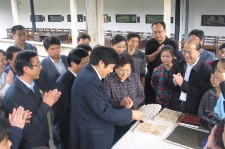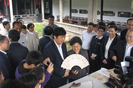 視察過程中,馬書記對紹興的歷史文化,特別是蘭亭的書法文化表現(xiàn)出濃厚興趣,一直贊嘆景區(qū)環(huán)境宜人,文化厚重。在王右軍祠墨華亭內(nèi),景區(qū)特備文房四寶,由景區(qū)副主任、紹興知名書法家喻革良現(xiàn)場揮毫創(chuàng)作了嵌有馬馼女士姓名的書法扇,連同著作《心儀蘭亭》、《喻革良書法作品集》一并贈送給了馬書記。臨走前,馬書記親切地感謝了景區(qū)的接待人員,并表示蘭亭之行給她留下了非常深刻的印象。