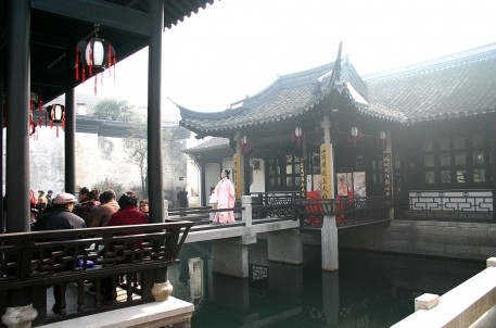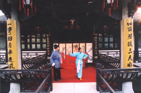 臺門社戲,    魯迅筆下風(fēng)情園在紹興魯迅紀(jì)念館西北側(cè),有一朱家臺門,又稱“老磐廬”,它西接周家新臺門,東鄰周家老臺門,北臨東咸歡河。朱家臺門環(huán)境幽雅,且寓古跡,為古城紹興保存最完整的典型的花園臺門建筑。朱家臺門的主人叫朱閬仙,即買下周家新臺門的“朱文公的子孫”。朱家臺門原為越王望花宮故址,系明初名將胡大海官宅的一部分。