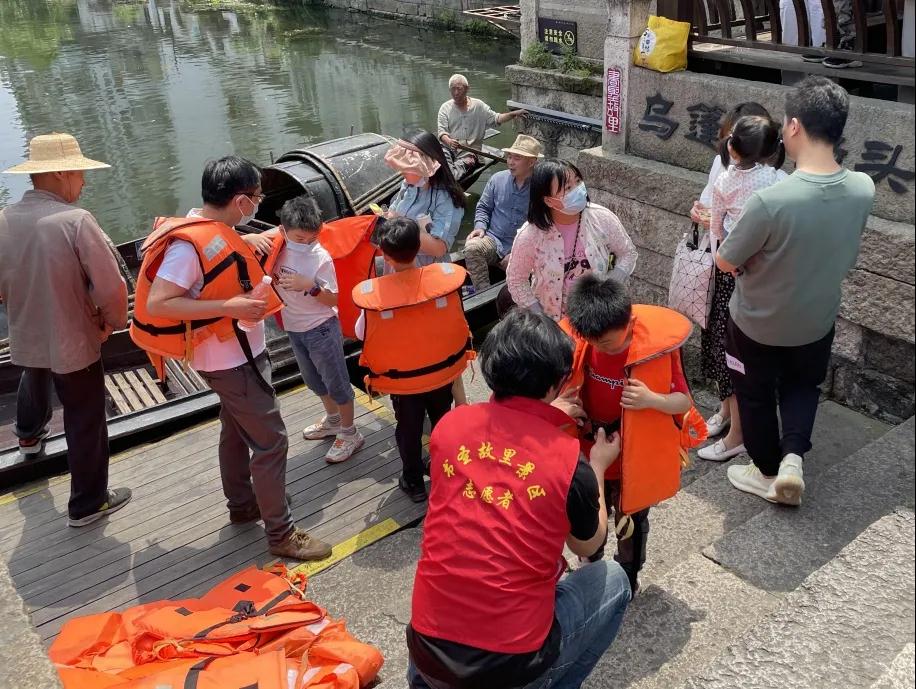 志愿者們幫助維持景區(qū)秩序,引導(dǎo)游客文明旅游,他們用一抹志愿紅,為五一增添色彩。