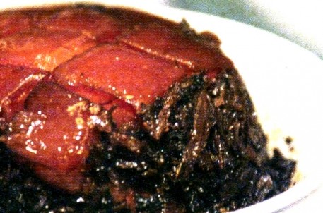 干菜燜肉”是一道典型的紹式名菜,被撰入《中國(guó)菜譜》,此菜由霉干菜與五花肉組成,配以紹酒、糖等佐料,先燜后蒸而成。成后菜色烏黑,稍帶甜味,肉色紅亮,肥而不膩,時(shí)下一些飯店里此菜很受顧客鐘愛(ài),一些外地游客也喜歡買幾包帶回家去品嘗一番。 魯迅先生、周恩來(lái)總理在生前也都愛(ài)吃這一家鄉(xiāng)菜。霉干菜燜肉還得到許多國(guó)際友人的贊許。1972年美國(guó)總統(tǒng)尼克松訪華來(lái)杭州,在杭州樓外樓的宴會(huì)上就有一只周總理的家鄉(xiāng)菜“霉干菜燜肉,尼克松吃后連聲稱OK!