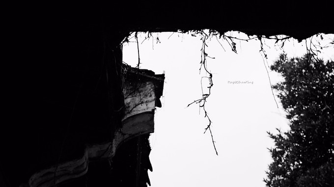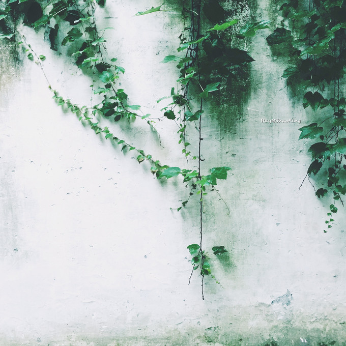垂掛在白墻上 像極了水墨國(guó)畫(huà)里的枯枝干藤