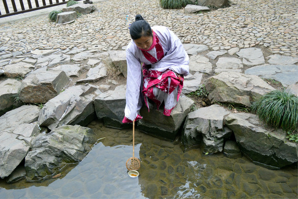 東晉永和九年,農(nóng)歷的三月初三,王羲之邀請(qǐng)了共42位名人雅士在蘭亭修禊,他們?cè)诰票锏股暇谱屗鼜那嫌尉従徠聛?lái),如果漂到誰(shuí)面前停住了,誰(shuí)就要飲酒作詩(shī),作不出的則要罰酒,最終匯集成冊(cè)稱之為《蘭亭集》,推薦主人王羲之為之作序,王羲之欣然答應(yīng),趁著酒興,一氣呵成蘭亭集序,后人稱為“天下第一行書”。