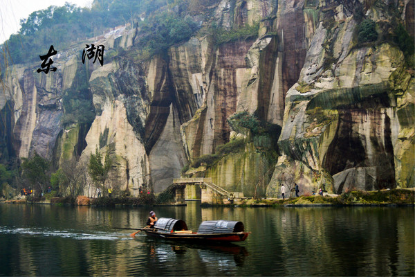 離開大禹陵,轉(zhuǎn)車到達(dá)東湖。到這里才知道,杭州西湖、紹興東湖。嘉興南湖并稱浙江三大名胡。東湖主要的看點(diǎn)就是這些人工開鑿之后的巖石。昔日秦始皇冬循至?xí)?,于此供芻草而得名。自漢代起,相繼至此鑿山取石,至隋,越國(guó)公楊素為修越城,大舉開山取石。經(jīng)千年鬼斧神鑿,遂成懸崖峭壁,奇潭深淵,宛如天開。