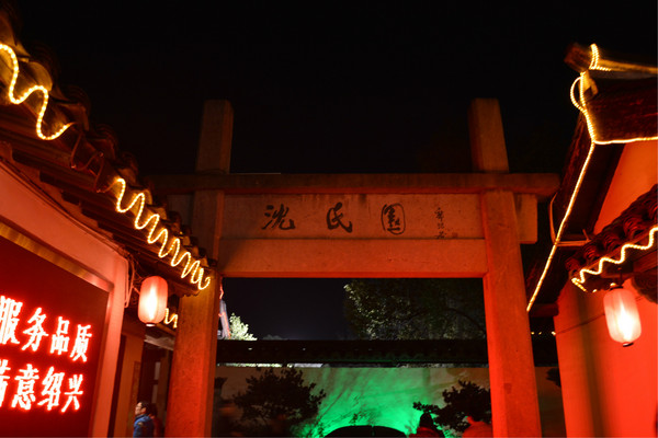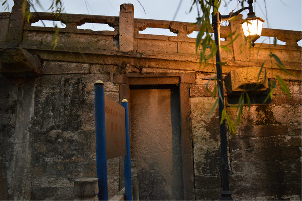 八字橋沿河是古鎮(zhèn)的味道,在這里慢慢走了一段,再八字橋南面是東雙橋,北面是廣寧橋。在廣寧橋更是發(fā)現(xiàn)了這樣一個(gè)神奇的“橋中門”,在昏黃的燈光下看去,很有味道。后在網(wǎng)上查得,說(shuō)廣寧橋橋下有纖道,為古代立交橋,我想這門應(yīng)該就是此道的封門罷。