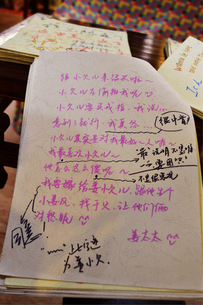 進(jìn)行的玩了一天,晚上回到青旅,習(xí)慣的翻看這些青旅的留言簿,每次在青旅看這些的時(shí)候,都覺(jué)得非常親切,似乎這些都是自己的親朋好友,很多時(shí)候看著看著就開心的笑了。然后在上面留下自己的青旅日志。