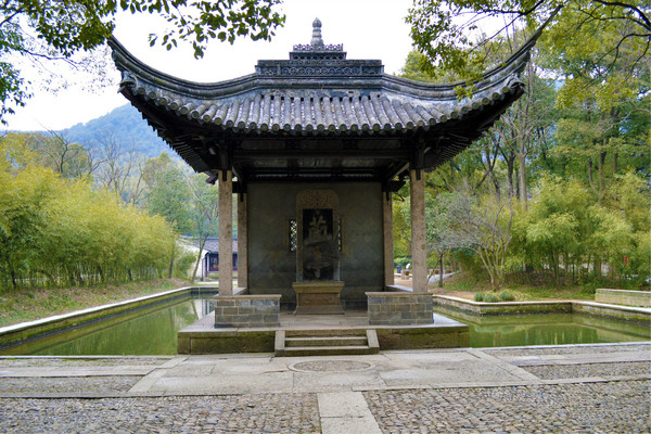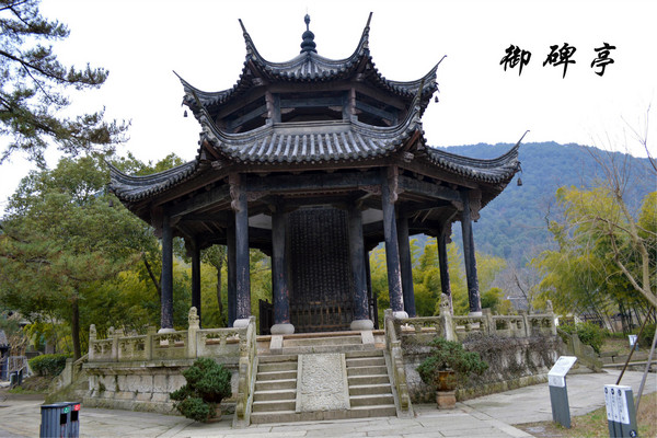 蘭亭碑亭是蘭亭的標(biāo)志性建筑,名列中國(guó)四大名亭之一,建于清康熙年間。碑上的“蘭亭”兩字,為康熙皇帝御筆所書。文革時(shí)期此碑石被紅衛(wèi)兵砸成四塊,后于80年修復(fù),但已留下了“蘭”字缺尾,“亭”字缺頭的遺憾。