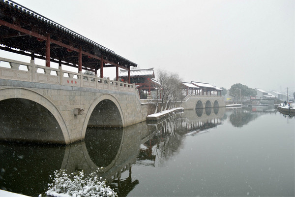 第四天醒來(lái)后,就跑到院子里,差點(diǎn)就興奮的喊出來(lái)了,雪還在簌簌的下,積雪更多了。沒(méi)有洗刷,直接拿著相機(jī)出去了,在魯迅故里風(fēng)景區(qū)里轉(zhuǎn)了一下。