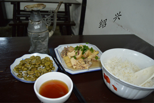 走到寶麟酒家的時(shí)候,被門口坐著的這位與眾不同的老者所吸引。我向來(lái)對(duì)于老人是沒(méi)有戒心的,所以就在這家店里坐了下來(lái),要了一份臘腸拼盤。味道果然好極,跟這位大爺聊了很久,他跟我詳細(xì)說(shuō)了香腸的做法還介紹了黃酒的種類,說(shuō)到此,我要了一碗黃酒。阿婆給我溫了一碗黃酒,這是他家自釀黃酒,其味醇中帶甘,比起在紹興城中所喝黃酒好太多。后來(lái)大爺自己悄悄的對(duì)我說(shuō),他就是安昌古鎮(zhèn)的形象大使徐寶麟,參演過(guò)很多電影電視,起先我也只是將信將疑,后來(lái)看到他身后的影視照片,又見(jiàn)大爺貪圖果然不凡,漸漸相信了。大爺談的起興,還拿出了臺(tái)灣某電視臺(tái)送給他的特別禮物,一個(gè)印著他照片的水杯。這下真的讓我確信無(wú)疑了。更加為自己的幸運(yùn)而開心了。