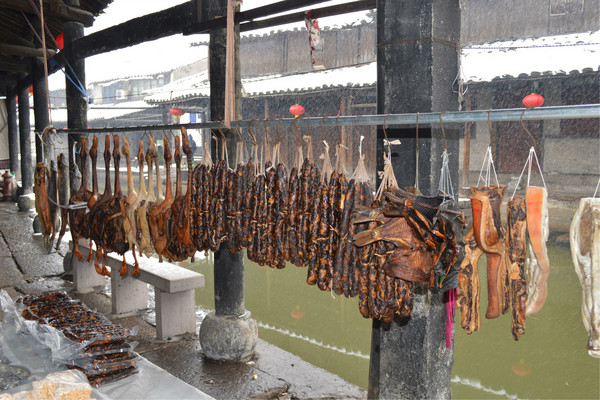 安昌臘腸遠(yuǎn)近聞名,進(jìn)入安昌后,到處都掛著臘腸,正好是午飯時(shí)間,對(duì)于自己是個(gè)考驗(yàn)啊。
