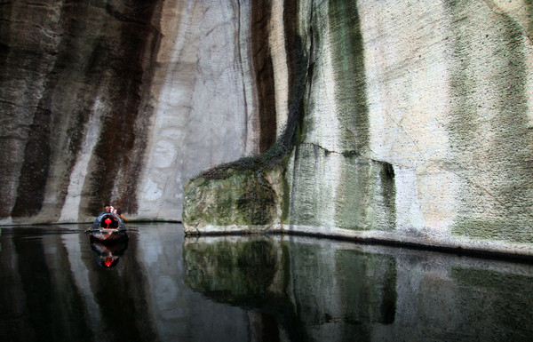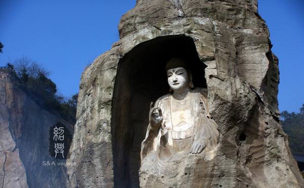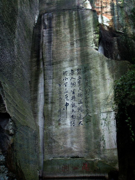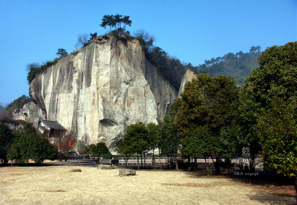 大家一般先到的是柯巖,三國時(shí)期,這里曾是一處采石場(chǎng),歷代不斷采石,鬼斧神工般地造就了姿態(tài)各異的石宕、石洞、石潭、石壁等石景。其中云骨和石佛是兩處不得不看的,云骨高30余米,底圍僅4米,聳立如錐,頂端古柏蒼翠,虬枝橫斜,據(jù)考證樹齡已逾千載,是自然造物的絕妙之作。其西為柯巖石佛,為唐代僧人依巖開鑿而成,彌勒坐像,高10.6米,通體一石,為人造藝術(shù)結(jié)晶。