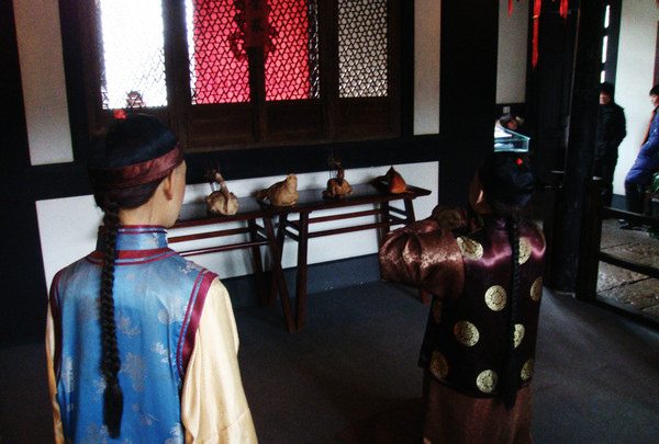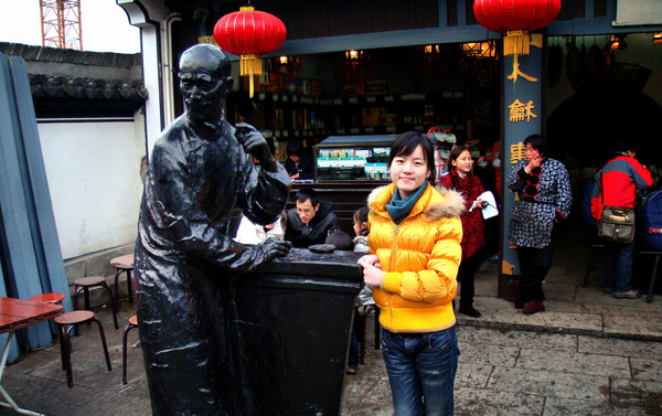 魯鎮(zhèn)其實(shí)是江南小鎮(zhèn)主題樂園,我去的時(shí)候還剛剛開發(fā)完成,沒什么人氣,現(xiàn)在店開了后還有很多街頭表演。走過氣派豪華的魯府,停在戲臺(tái)前看看社戲,在咸亨酒店里用大洋換一杯酒,聽喋喋不休的祥林嫂念叨著自己家的阿毛……戲里戲外仿佛都是真實(shí)的存在。