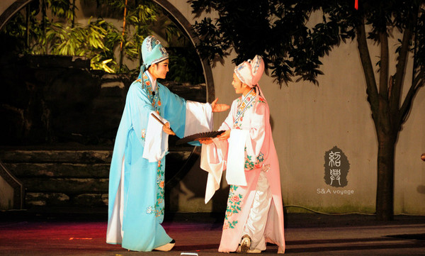 千古絕唱被拓印在一面墻上。不過來這里最好的方式是夜游,通過看晚上的越劇表演《釵頭
