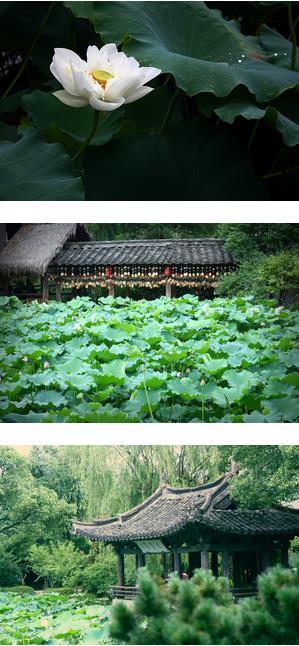 走進(jìn)沈園,就步入了詩(shī)境,池塘中初開(kāi)的荷花無(wú)限嬌羞,那些亭臺(tái)軒榭古樸而蒼涼,是因?yàn)閳@內(nèi)灰色調(diào)的建筑,還是因?yàn)槟嵌吻Ч挪焕系膼?ài)情悲劇……