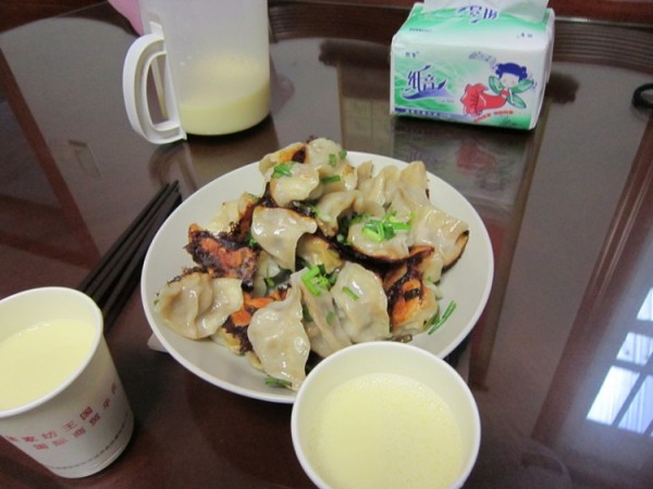 京京媽媽給我們做的早餐,煎餃,玉米牛奶,很可口。