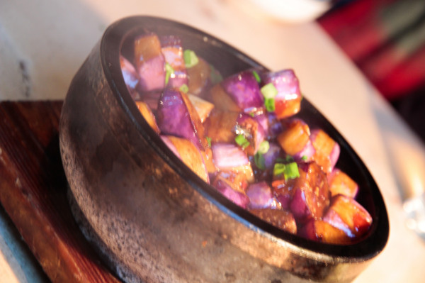 茄子雞肉臭豆腐,一上來就“呲呲”的發(fā)出聲音,聽了就讓人很有食欲。