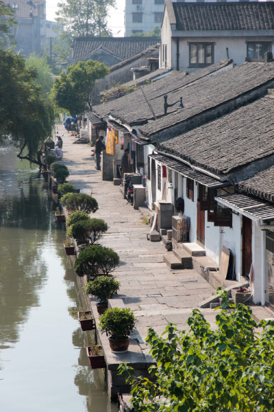 倉橋直街是比較有名的歷史街區(qū),人不少。這里主要有河道、民居、石板道路三部分,河道兩旁以水鄉(xiāng)民居為主,大多建于清末民初?,F(xiàn)在有很多民居開了特色小店。