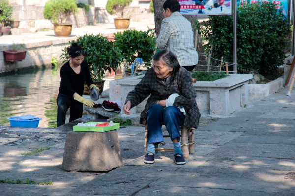 離開魯迅故居擁擠的人潮,走十多分鐘,便來到了生活氣息濃郁卻又清幽寂靜的八字橋歷史街區(qū)。八字橋因其兩橋相對(duì)而斜,狀如八字,故名。此橋始建于宋嘉泰年間,1256年重建,可算是中國(guó)現(xiàn)存最古老的城市橋梁。給我的第一感覺是:這里有著真實(shí)的歷史,就像小時(shí)候爺爺奶奶也住在這樣的臨河木屋里。家門口曬著被子或是梅干菜,也架著竹竿,晾著衣服,若是仔細(xì)看,還能看到日頭下衣服上冒出的水蒸氣。