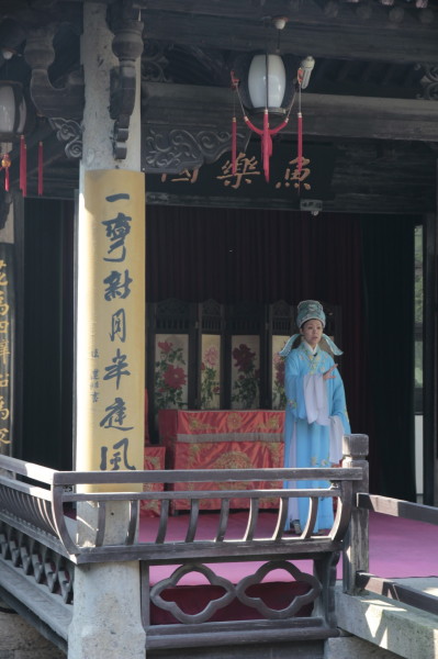 但,紹興之于我,就是故鄉(xiāng)的感覺,兒時(shí)的味道。從小吃的香糕、梅干菜扣肉、霉菜梗便是紹興的味道;而海寧那些老城廂也是中間青石板路,兩旁是老舊的兩層木屋,這樣的景象如今在紹興老城區(qū)也不在少數(shù)。于是,這場(chǎng)旅行便不再是一場(chǎng)旅行,因?yàn)槲覀儗ふ业牟辉偈锹眯袝r(shí)新鮮的感覺,而是舊時(shí)的回憶。紹興,對(duì)于生于江南的我來說,沒有太多的景致可以留存于心,但卻有懷念的一些小小鏡頭,最喜歡的是在八字橋歷史街區(qū)逛的時(shí)候,看到橋上或者門口晾曬的棉絮被褥,還有老年人坐在自家門口的竹凳上,慢悠悠地剝著石榴,一粒粒放入口中;亦或是在魯迅故居循著飄來的越劇聲找去,便能找到臨湖的搭臺(tái)上在唱著才子佳人的戲子,想起小時(shí)候跟著媽媽聽越劇紅樓夢(mèng)的景象;更有在蘭亭,看著《蘭亭集序》的貼碑,“此地有崇山峻嶺,茂林修竹,又有清流激湍,映帶左右”,不僅景色清幽,更能感懷憂思古情,“夫人之相與,俯仰一世。或取諸懷抱,悟言一室之內(nèi);或因寄所托,放浪形骸之外”。這些零零總總,便是紹興留給我的印象:就像烏篷船,慢慢地劃開去,留在水上的水波漣漪。