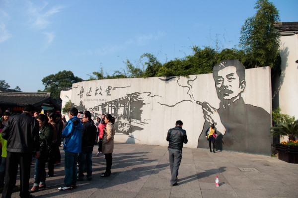 魯迅故里的大牌子,無數(shù)拍照的人!