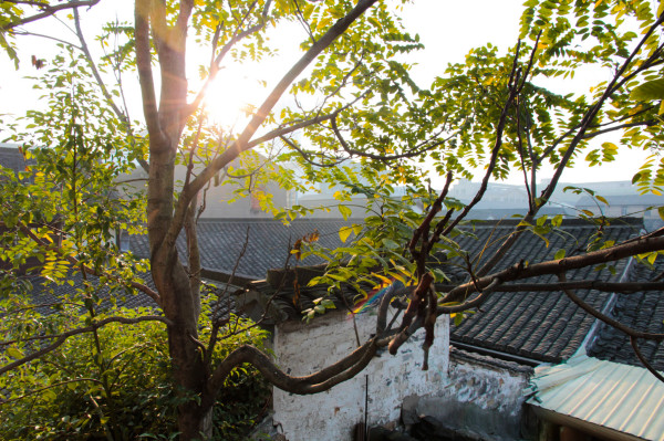 8點(diǎn)出門,吃了碗小餛飩當(dāng)早飯。先去魯迅故居的游客服務(wù)中心憑身份證領(lǐng)取免費(fèi)門票,雖然時(shí)間很早,魯迅故居也是8:30開門,但是旅游團(tuán)的人已經(jīng)一大批一大批來了,和我們昨天的旅行截然不同,今天一直混跡于人群,沒有了那種閑散的心情。不過,我們很會(huì)在人群中找那些僻靜些的角落,然后享受一下陽光和清靜。