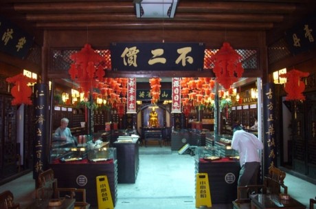 古城現(xiàn)存的老字號有咸亨酒店、震元堂、三味臭豆腐、恒濟(jì)當(dāng)鋪、同心樓,榮祿春,孟大茂,沈永和。