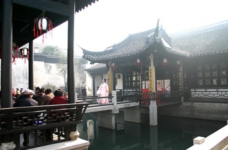 紹興的水鄉(xiāng)戲臺(tái),大都構(gòu)筑在土地廟之類寺廟前的河上,故稱"河臺(tái)"、"萬年臺(tái)"。東安、任家橋、鳳儀、東周、賓舍等地的古戲臺(tái)迄今猶存。清代童謙孟寫有一首竹枝詞,描寫當(dāng)年看社戲的盛況:"岳神賽罷賽都神,演出河臺(tái)戲曲新,兩岸燈籠孟育管,水中照見往來人"。魯迅在《社戲》中說,外國人以為中國戲的"大敲,大叫,大跳",不適于劇場演出,但若在野上演出,"遠(yuǎn)遠(yuǎn)地看起來",卻"自有他的風(fēng)致"?!洱埢⒍贰?、《游園吊打》是很能體現(xiàn)紹劇特色的戲,歷來為紹興觀眾所拍手稱快,叫好。魯迅把這兩出戲?qū)戇M(jìn)《阿Q正傳》、《社戲》等著名小說里,均不是他信手拈來之筆,而是充分反映了它們的人民性。連自己的姓名也寫不出,甚至連圓圈都畫不圓的阿Q在臨刑前游街時(shí),居然還要哼幾句"手執(zhí)鋼鞭將你打",足以說明社戲受到紹興人民的普遍歡迎了。魯迅再用他的如椽之筆,以優(yōu)美抒情的筆調(diào)追述兒少年代觀社戲的美好回憶,一派詩情畫意,引人入勝,更激起了人們對(duì)社戲的眷戀和懷念。