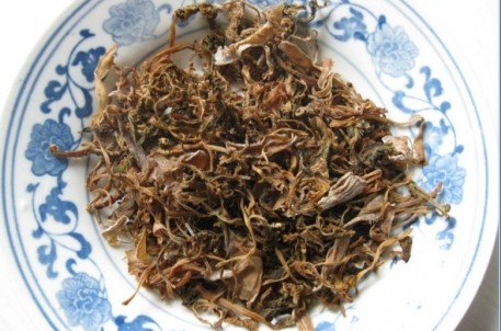 紹興烏干菜油光烏黑,香味醇厚,耐貯藏??煞譃榘撞烁伞⒂筒烁珊徒娌烁扇N,味道鮮美要數(shù)芥菜干。芥菜干又以“百腦芥菜”的品種腌曬干萊為上乘。“百腦芥菜”菜芯多,梗葉細(xì)長(zhǎng),適時(shí)收割質(zhì)地鮮嫩。拿這種菜曬制成的干菜,越蒸越烏,越蒸越軟,越蒸越香。在清明節(jié)前,將芥菜的菜心曬干,用金銀絲一小束一小束地扎起來(lái),裝在小壇中鹽漬,待鹵汁回落,成熟后取出,晾曬、蒸熟,菜呈紅黑色后,在太陽(yáng)下曬,這樣反復(fù)蒸曬多次,直至色澤紅亮,香氣撲鼻,最后裝入外面飾 霉干菜有人物山水的菜壇中密封。據(jù)曾在清代制作過(guò)貢品菜的老人回憶,這樣精制的貢菜由紹興知府和山陰縣監(jiān)制,每年不過(guò)千把斤,菜壇上加蓋黃封,專(zhuān)人運(yùn)往京城。據(jù)傳,乾隆皇帝六下江南,來(lái)紹興時(shí)都要品嘗用貢菜做的菜肴和菜場(chǎng)。如今,紹興農(nóng)民幾乎家家自制,戶(hù)戶(hù)常備,通年不斷。商品烏干菜年產(chǎn)在25O噸以上,遠(yuǎn)銷(xiāo)國(guó)內(nèi)外。