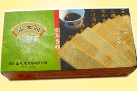 解放前,紹興城內(nèi)水澄巷有一家孟大茂香糕店,以葫蘆為記,自辦工場(chǎng),制作的各色香糕,均屬上乘,遠(yuǎn)銷外地。因生意興隆,被人覬覦,結(jié)果不但紹興有“孟大茂”“孟泰茂”等香糕店出現(xiàn),而且杭州、上海等地也出現(xiàn)“孟大茂分設(shè)”等香糕店,急得真正的孟大茂只得在商標(biāo)上印上“本店只此一家,并無分設(shè)”的聲明。